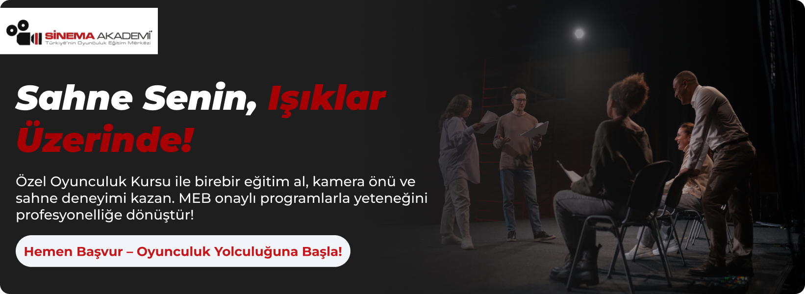 Sinema Akademi – Türkiye'nin en çok tercih edilen ileri seviye oyunculuk kurslarından biri. Kamera önü, karakter yaratımı ve sahne pratiğiyle donatılmış eğitim programı sunuyor.