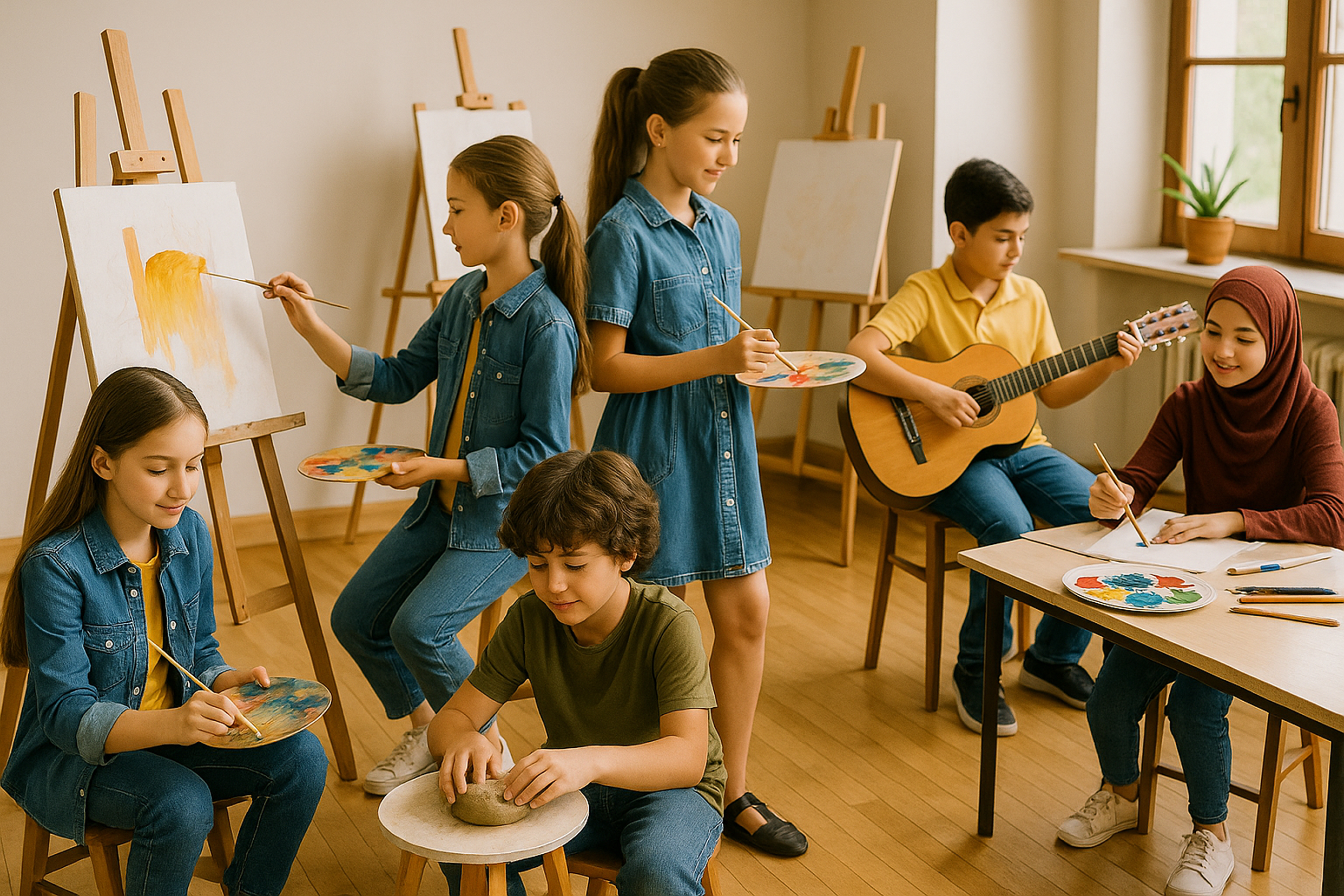 - Karakalem ve suluboya teknikleriyle temel çizim ve sanat becerileri geliştirilir.